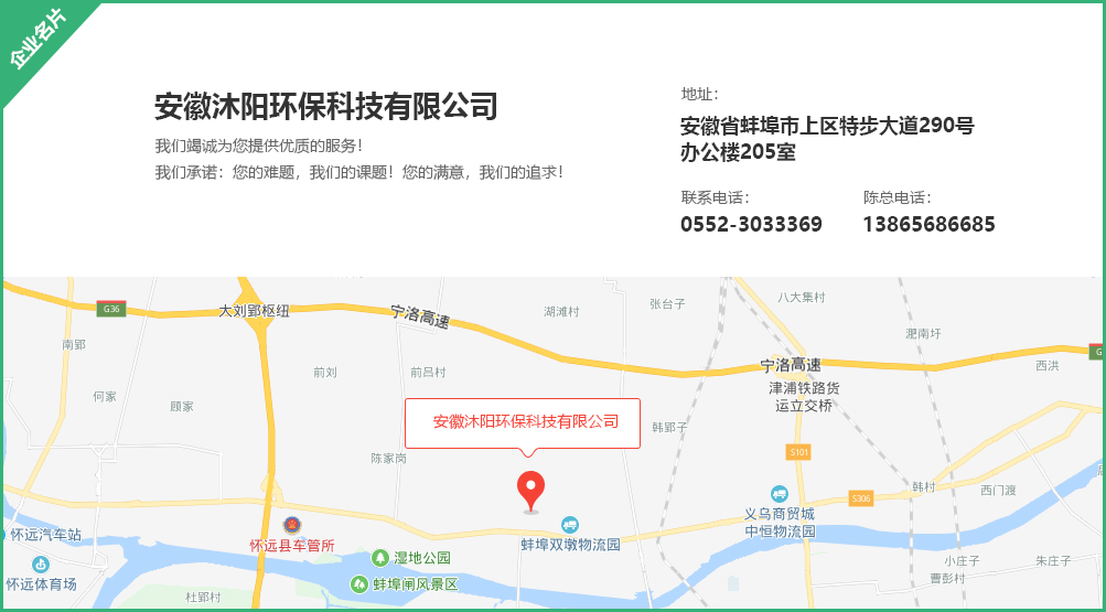 公司遵循“以人為本,開拓創(chuàng)新,科學(xué)管理,優(yōu)質(zhì)服務(wù)”的質(zhì)量方針,人性化地加強(qiáng)內(nèi)部管理,嚴(yán)把質(zhì)量關(guān),不斷研發(fā)新產(chǎn)品,誠信服務(wù)于每位客戶。奉獻(xiàn)于創(chuàng)造一個碧水藍(lán)天的人類生活環(huán)境,是每一位沐陽環(huán)保人的目標(biāo)。-