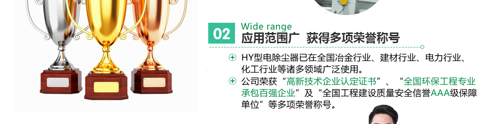 公司目前主營業(yè)務(wù)有MY系列靜電除塵器、袋式除塵器、電袋復(fù)合式除塵器、氣力輸灰系統(tǒng)、爐內(nèi)噴鈣系統(tǒng)、脫硫脫硝系統(tǒng)、煙氣脫白等大氣污染治理產(chǎn)品的設(shè)計、制造、安裝、調(diào)試,各種老式除塵器的維修、改造,除塵器的各種配件的銷售等。